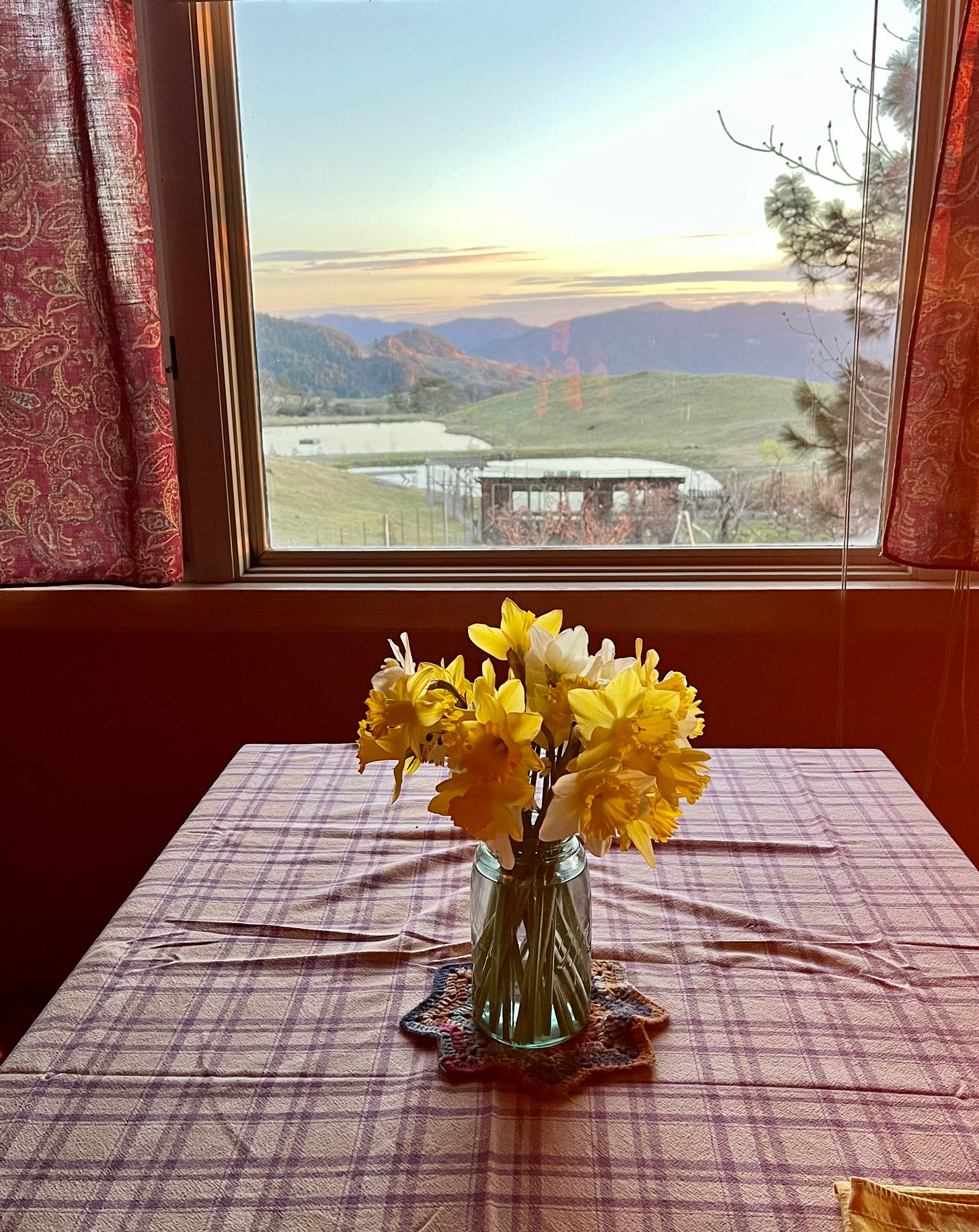 The photo at the top sums it all up. This is the view from my brother Matthew’s window at his home off the grid in Northern California. I visit regularly at Bell Springs in order to connect with family members. We talk, we read, we hike, we share meals and lots of laughter. I connect with self and others on those visits. The brilliant and beautiful hills and views connect me completely with the natural world. I am humbled by the nighttime views of the Milky Way and the daytime views of hills, trees, and cloud formations.